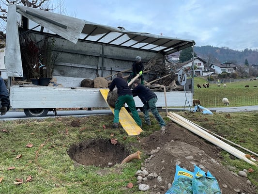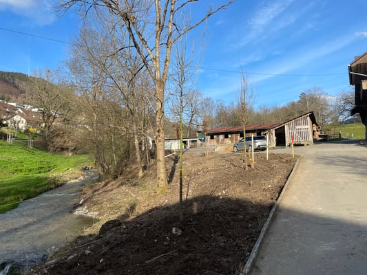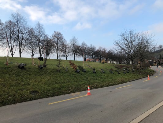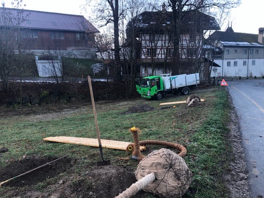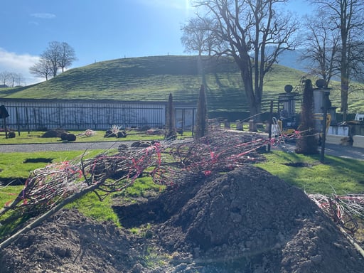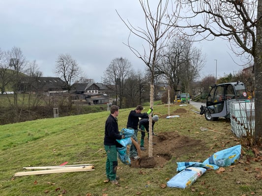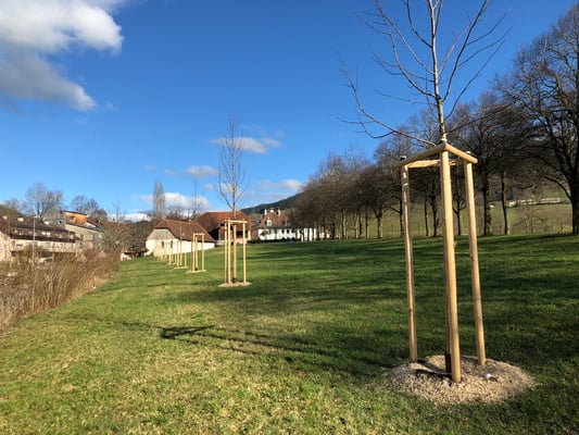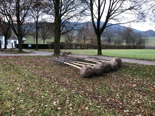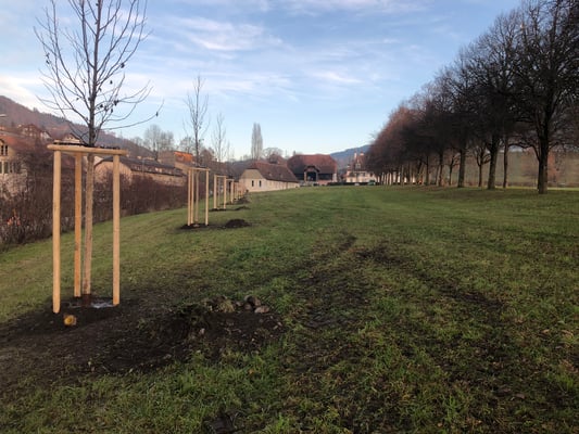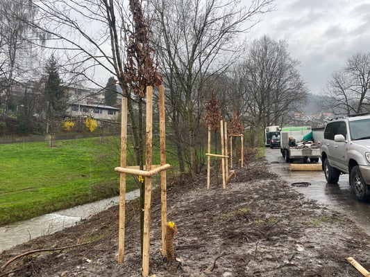 Der Sommer 2022 war für die frisch gepflanzten Bäume eine grosse Herausforderung. Dementsprechend mussten sie zwei- bis dreimal pro Woche gewässert werden. Die «Treegator» Säcke (Tropfbewässerung) leisteten gute Dienste.